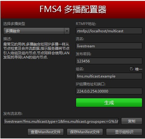 (3)配置器(为方便用户使用,我公司重新编写了中文版配置器)专用于生成多播地址的应用。并将此地址分发给编码机及直播应用(联讯电视直播系统、网络课堂系统及网络电视台系统适用)。